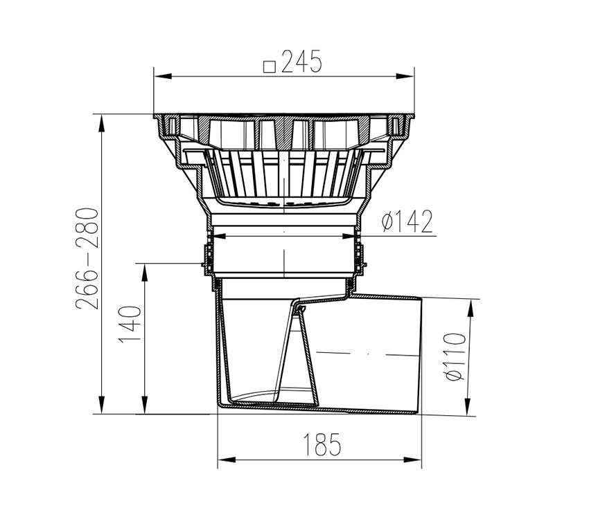 Трап канализационный MCH с боковым сливом и с воротником D110-250 пластик (замок)