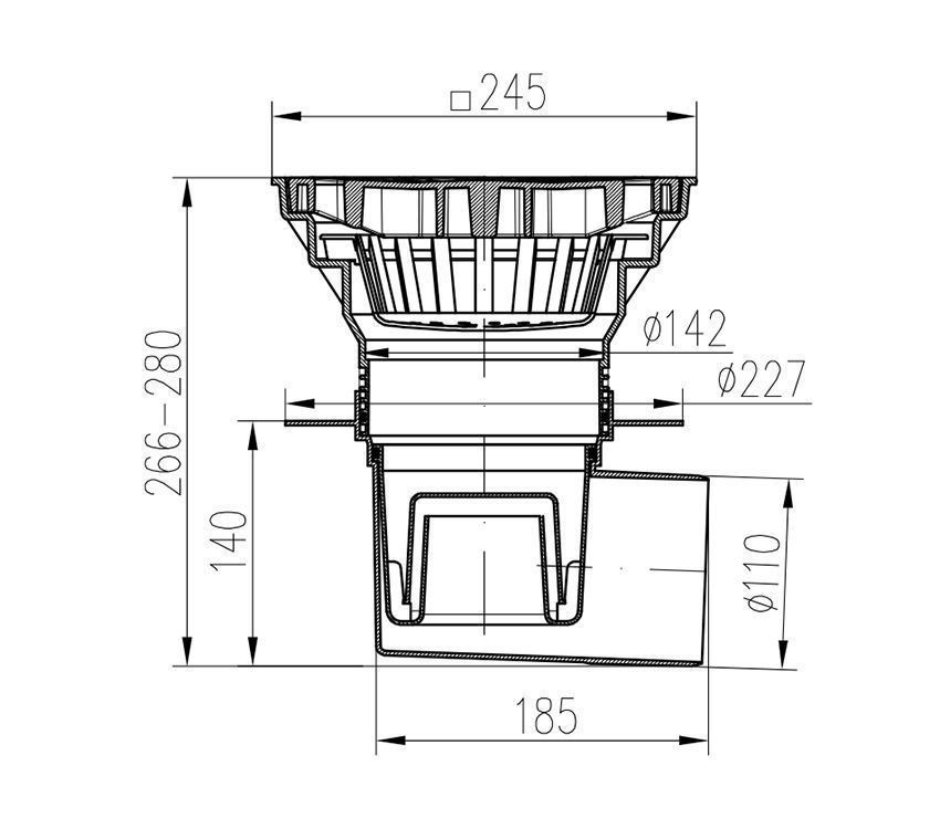 Трап канализационный MCH с боковым сливом и с воротником D110-250 пластик (замок)