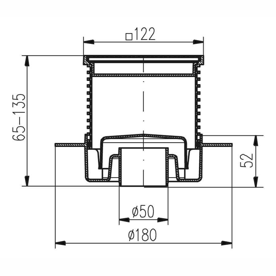 Трап MCH для пола D50 решетка нерж. 122х122 c воротником