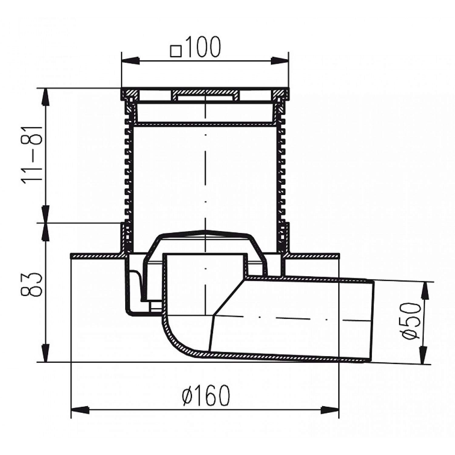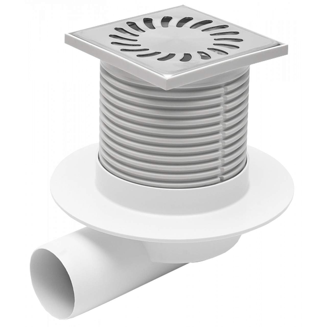 Трап MCH для пола с боковым сливом D50 решетка и рамка нерж. 100х100 с воротником