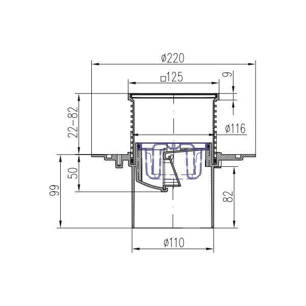 Трап MCH с боковым сливом универсальный DN110 решетка нерж. 122х122 (г/з+с/з) черный