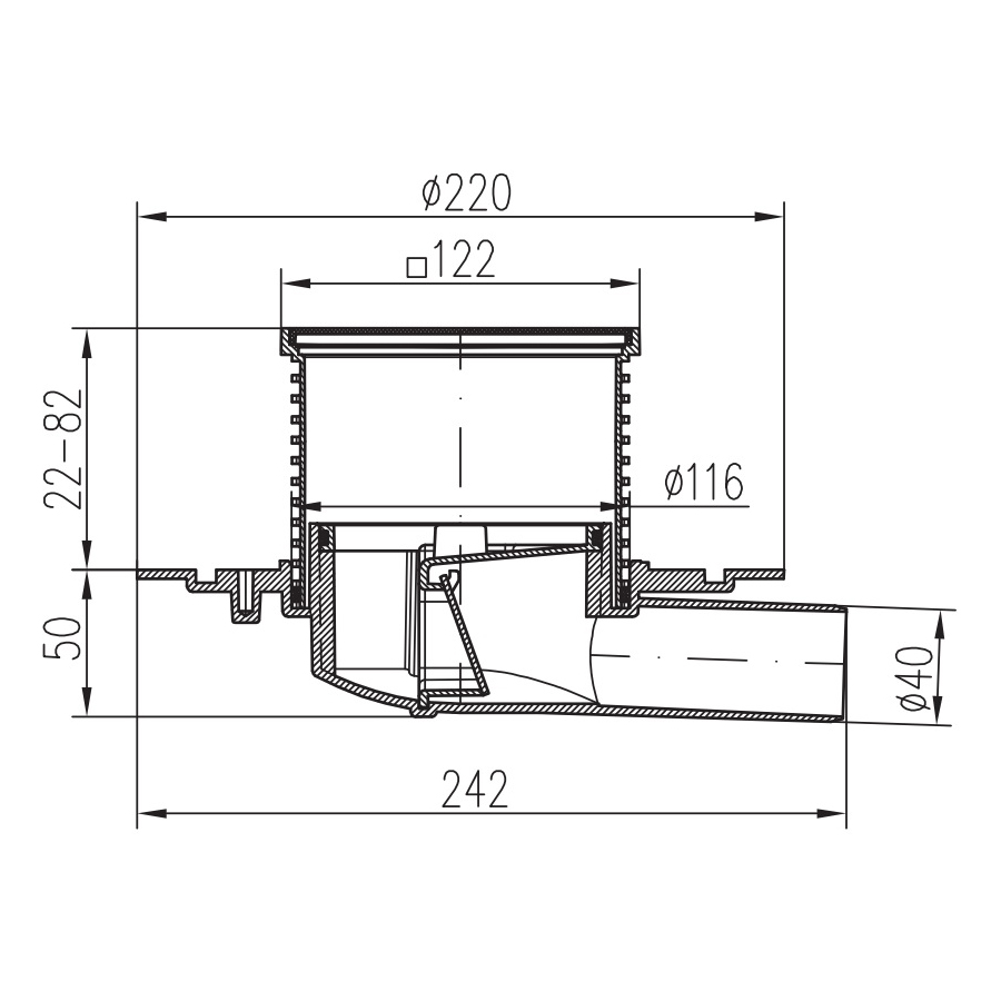 Трап MCH с боковым сливом универсальный DN40 решетка и рамка нерж. 122х122 (г/з+с/з)
