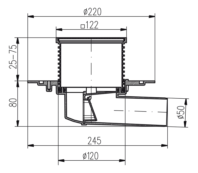 Трап MCH с боковым сливом универсальный DN50 решетка нерж. 150х150 (г/з+с/з)