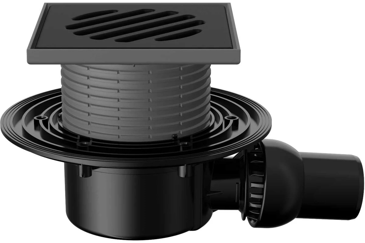 Трап регулируемый Fachmann T 520.0 POsB 145x145 горизонтальный шарнирный выпуск DN50 без гидрозатвора, решетка чугунная, пластиковый подрамник (04.045