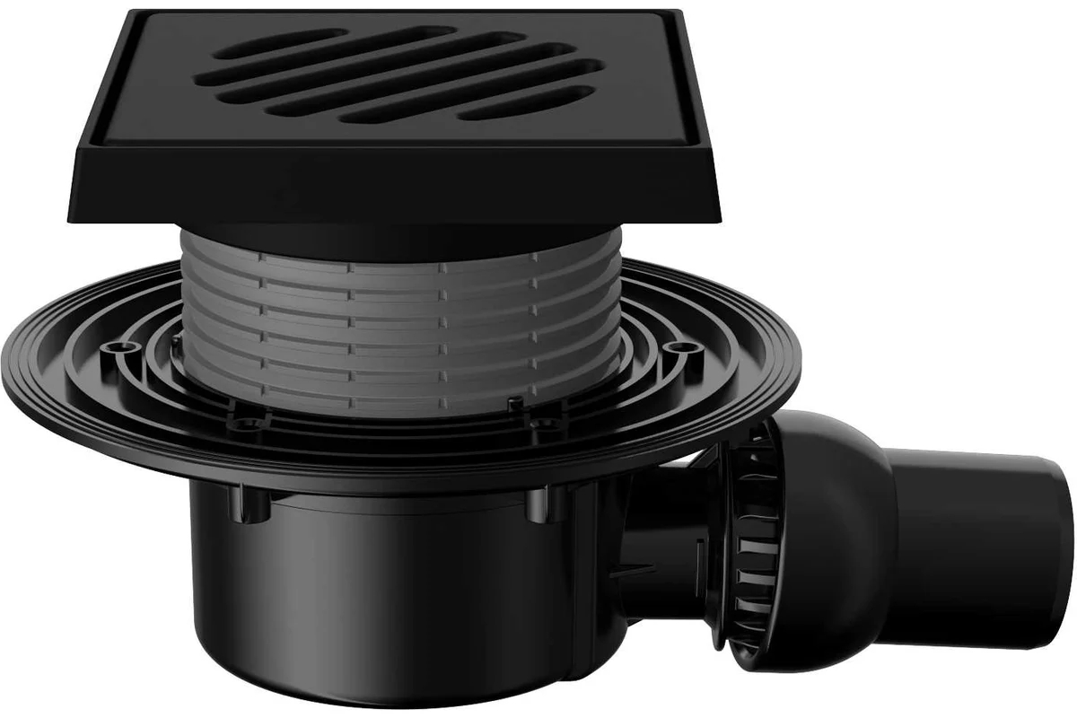 Трап регулируемый Fachmann T 520.0 POsG 150x150 горизонтальный шарнирный выпуск DN50 без гидрозатвора, решетка чугунная, чугунный подрамник (04.049)