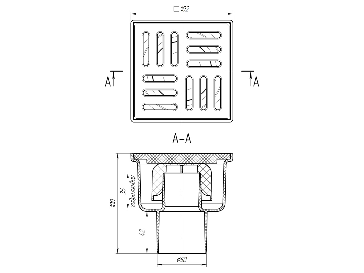 Трап вертикальный 50 мм. (100*100) АНИ нерегулируемый, с гидрозатвором (решетка пластик) АНИ пласт (TA5204)