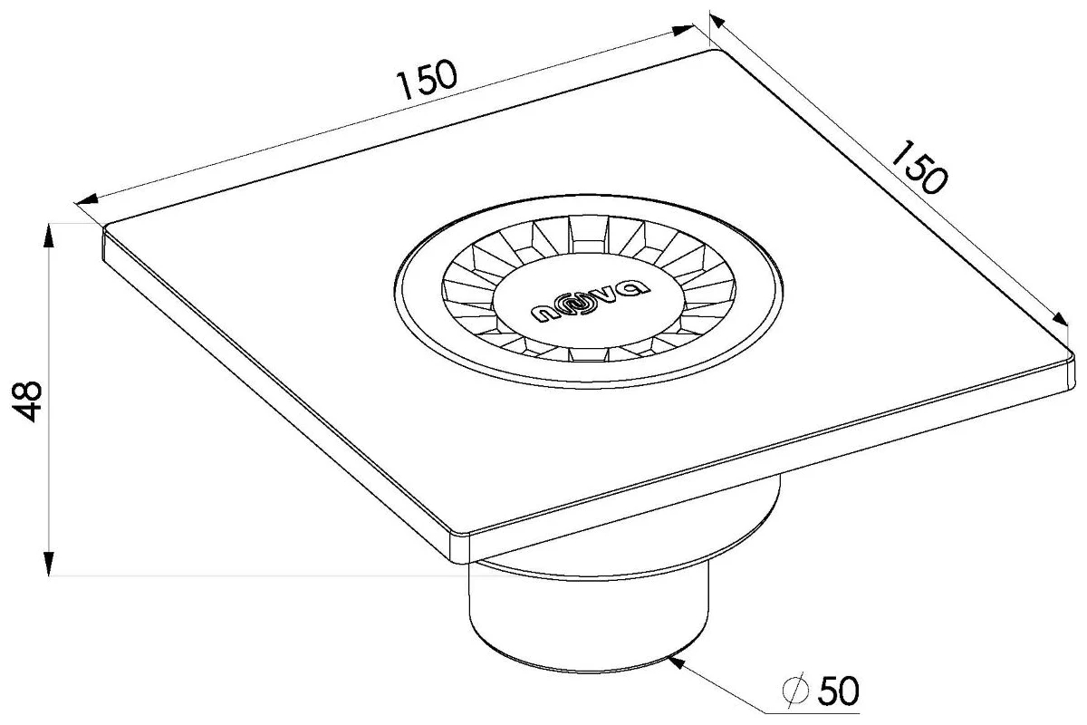 Трап вертикальный 50 мм. (150х150) Nova пластиковая решетка (белый) (5030)