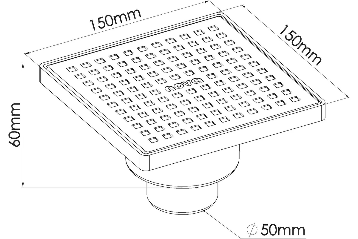 Трап вертикальный 50 мм. (150х150) Nova с решеткой из нерж.стали (сухой затвор) (5036)