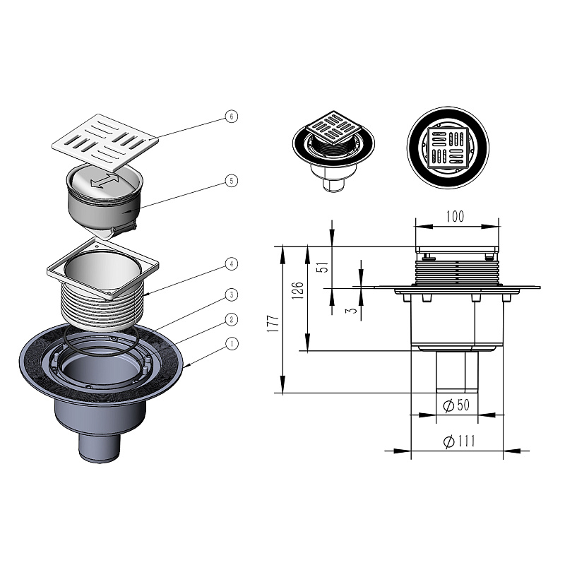 Трап вертикальный Azario 100x100 хром (AZZ15100)