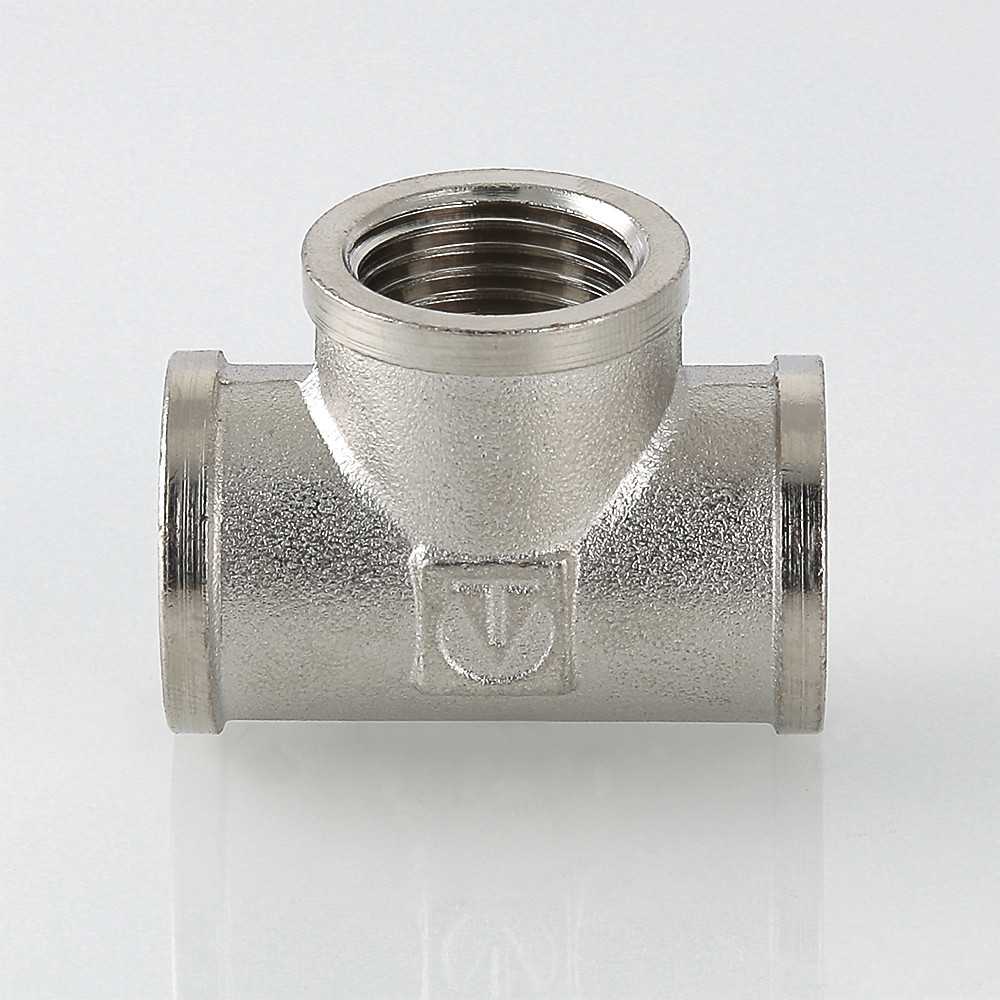 Предназначен для разветвления потока воды на два направления. Имеет с каждой стороны внутреннюю резьбу. Резьба – внутренняя, цилиндрическая трубная по ГОСТу 6357 (ISO 228, EN 10226), совместимая также с наружной конической трубной резьбой по ГОСТу 6211 (ISO R7).