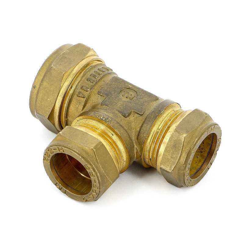 Тройник 22*28*22 (обжим) Tiemme (1000212) / Компрессионный тройник для медной трубы (Art. 1007)