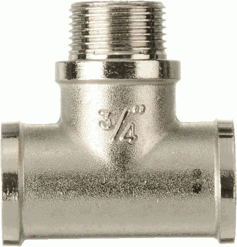 Тройник TERMA 06106 равнопроходной предназначен для создания соединения трубопровода, диаметр 3/4"", резьба внутренняя/наружная/внутренняя. Изготовлен из горячепрессованной латуни с никелированным покрытием, номинальное рабочее давление от 25 бар, рабочий диапазон температуры от -20°C до +150°C.