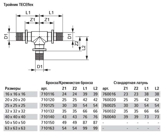 Тройник 90° TECE TECEflex бронза - фитинг с оптимальным коэффициентом сопротивления потоку (дзета-значение) в корпусе и на выходе. Для соединения труб TECEflex с помощью пресс-втулки без применения уплотнительного кольца. Подходит для питьевой воды любого качества. Пресс-втулки TECEflex не входят в комплект.