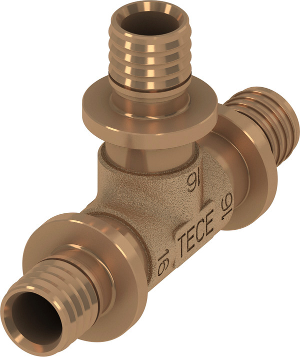 Тройник 90° TECE TECEflex бронза - фитинг с оптимальным коэффициентом сопротивления потоку (дзета-значение) в корпусе и на выходе. Для соединения труб TECEflex с помощью пресс-втулки без применения уплотнительного кольца. Подходит для питьевой воды любого качества. Пресс-втулки TECEflex не входят в комплект.