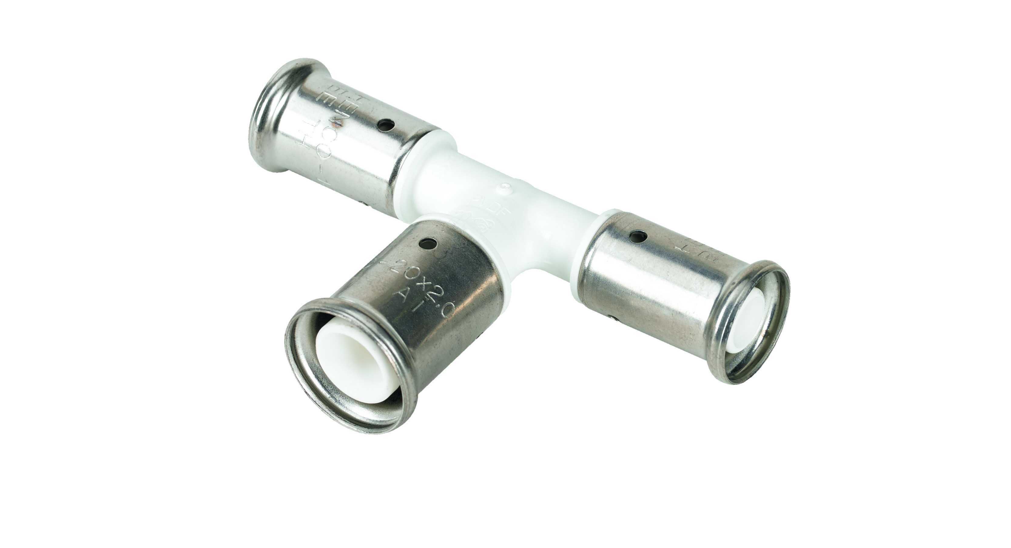 Тройник 20х26х20 Henco PVDF (пресс, белый) (12PKW-202620)