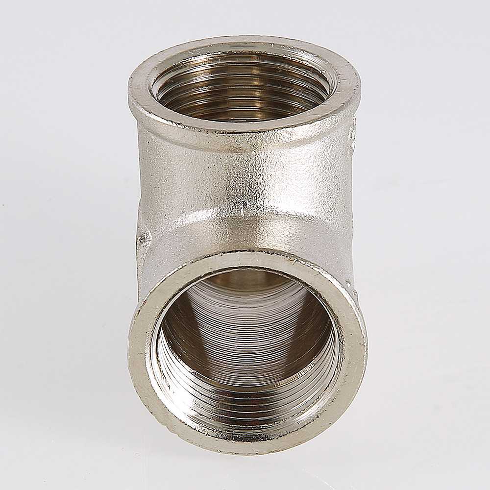 Резьбовой фитинг – тройник переходной с внутренней резьбой. Уникальная комбинация присоединительных патрубков позволяет смонтировать участок трубопровода соответствующей конфигурации без дополнительных соединителей. Фитинг изготовлен методом горячей штамповки из латуни CW617N, никелирован. Резьбовые фитинги VALTEC без резиновых уплотнителей допускается использовать при температуре рабочей среды до 250 °С (максимальное рабочее давление при этом составляет 2,7/1,7.