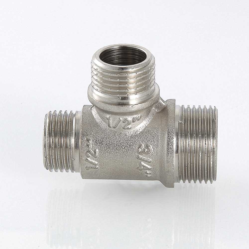 Резьбовой фитинг – тройник переходной с наружной резьбой изготовлен из латуни марки CW617N методом горячего штампования с последующим нанесением никелевого гальванопокрытия. Применяется для создания разъемных резьбовых соединений на трубопроводах из стальных, медных, латунных, пластиковых и металлопластиковых труб. Комбинация присоединительных патрубков данной модели позволяет смонтировать участок трубопровода соответствующей конфигурации без дополнительных соединителей. Резьба фитинга – трубная цилиндрическая по ГОСТу 6357 (ISO 228, EN 10226), имеет насечки для эффективного удержания уплотнительного материала.