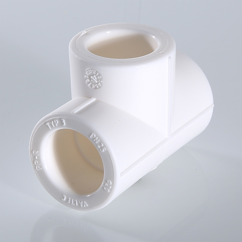 Трехсторонний равнопроходной фитинг для монтажа полипропиленовой трубопроводной системы методом раструбной сварки.