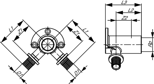 Тройник угловой, удлиненный с настенным креплением TECE TECEflex закругленный бронза с низким падением давления, для соединения труб TECEflex с помощью пресс-втулки без применения уплотнительного кольца с резьбовыми фитингами или фитингами с резьбой, соответствующей стандарту DIN EN 10226. Фитинг с оптимальным коэффициентом сопротивления потоку (дзета-значение). Подходит для питьевой воды любого качества.