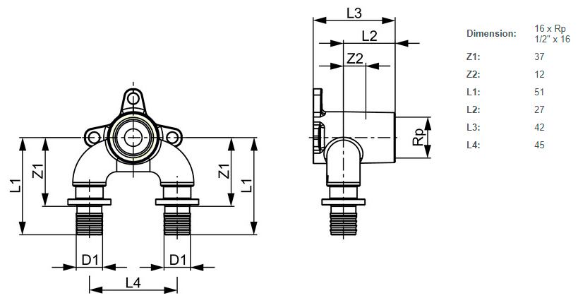 Тройник угловой с настенным креплением TECE TECEflex закругленный бронза с низким падением давления, для соединения труб TECEflex с помощью пресс-втулки без применения уплотнительного кольца с резьбовыми фитингами или фитингами с резьбой, соответствующей стандарту DIN EN 10226. Фитинг с оптимальным коэффициентом сопротивления потоку (дзета-значение). Подходит для питьевой воды любого качества.