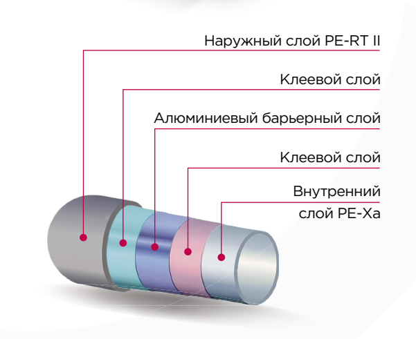 Внутренний слой PE-Xa: высокая прочность и устойчивость благодаря пероксидной сшивке (>70%) материал обладает повышенной прочностью и устойчивостью к перепадам температур и давления.