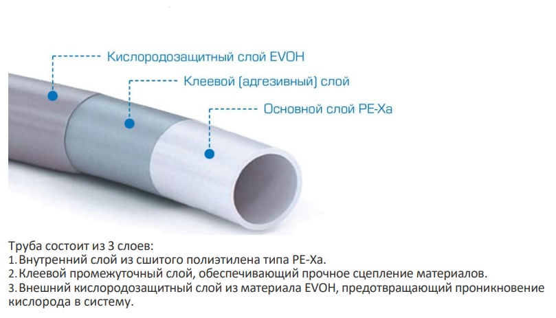 Кислородозащитный слой EVOH: внешний слой из материала EVOH предотвращает проникновение кислорода в систему, что снижает риск коррозии металлических элементов системы и продлевает срок службы всей системы отопления или водоснабжения.