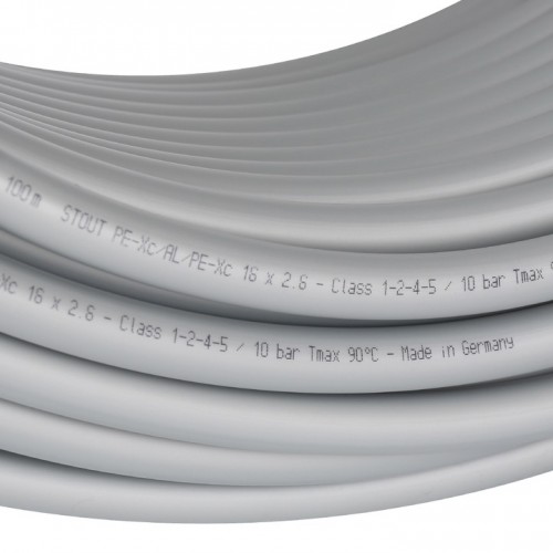STOUT 20x2,9 (бухта 100 м) - это стабильная труба с трехслойной конструкцией из полиэтилена сшитого поперечно (PE-Xc), алюминия (Al) и снова полиэтилена сшитого поперечно (PE-Xc).