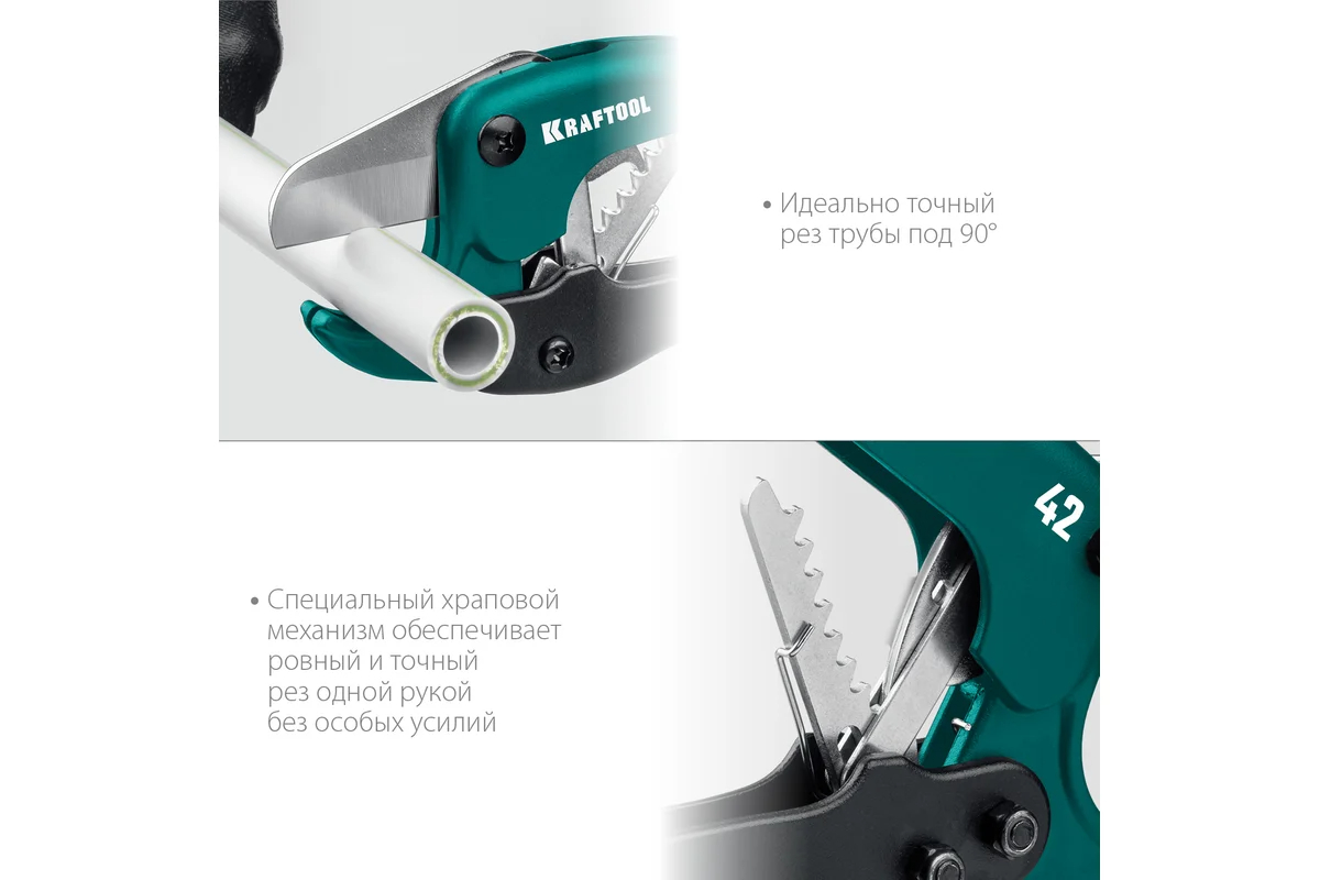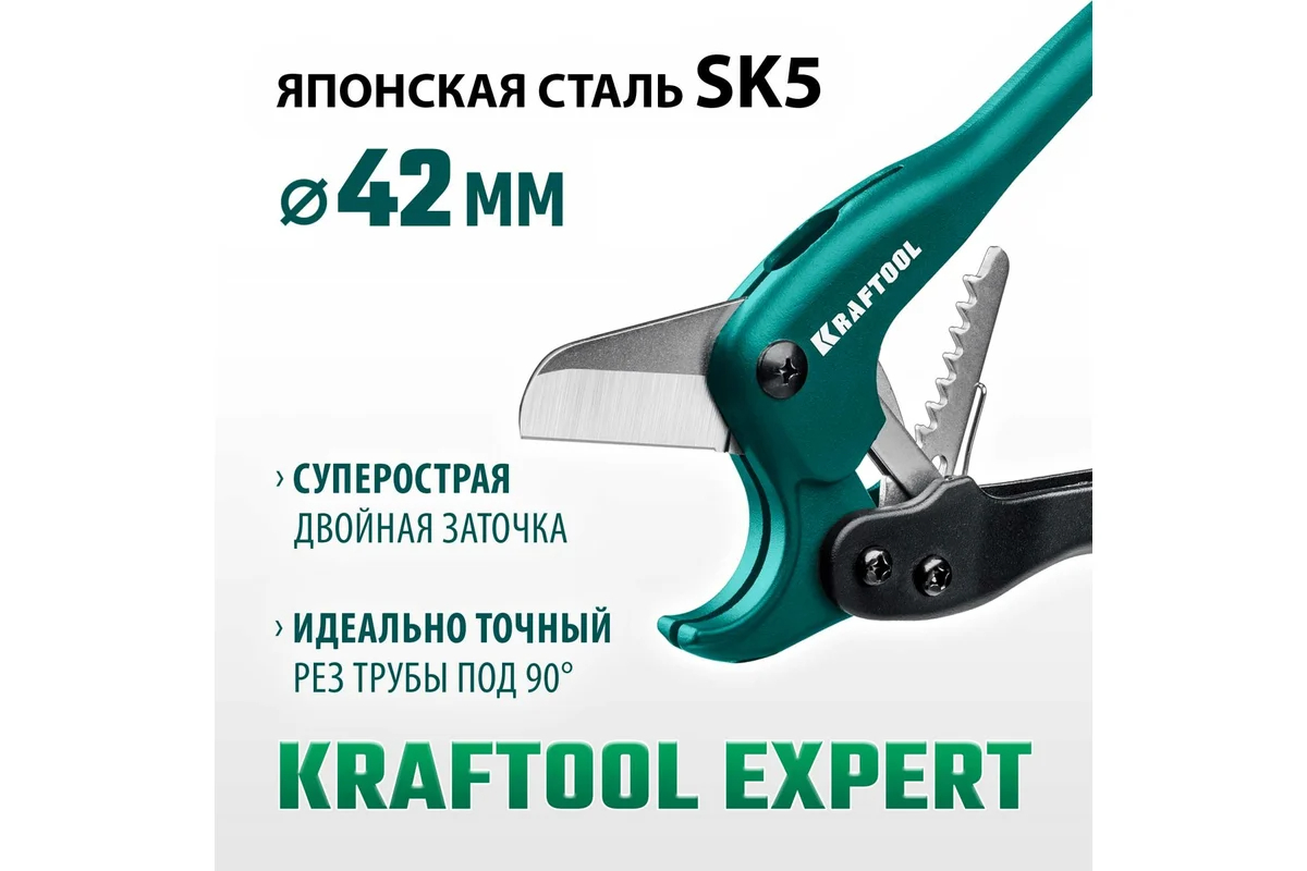 Высокоточный труборез по пластиковым трубам KRAFTOOL Expert-42 до 42 мм 23381-42_z02 применяется для резки металлопластиковых труб при проведении ремонтных работ таких как монтаж и демонтаж трубопроводных и отопительных систем.