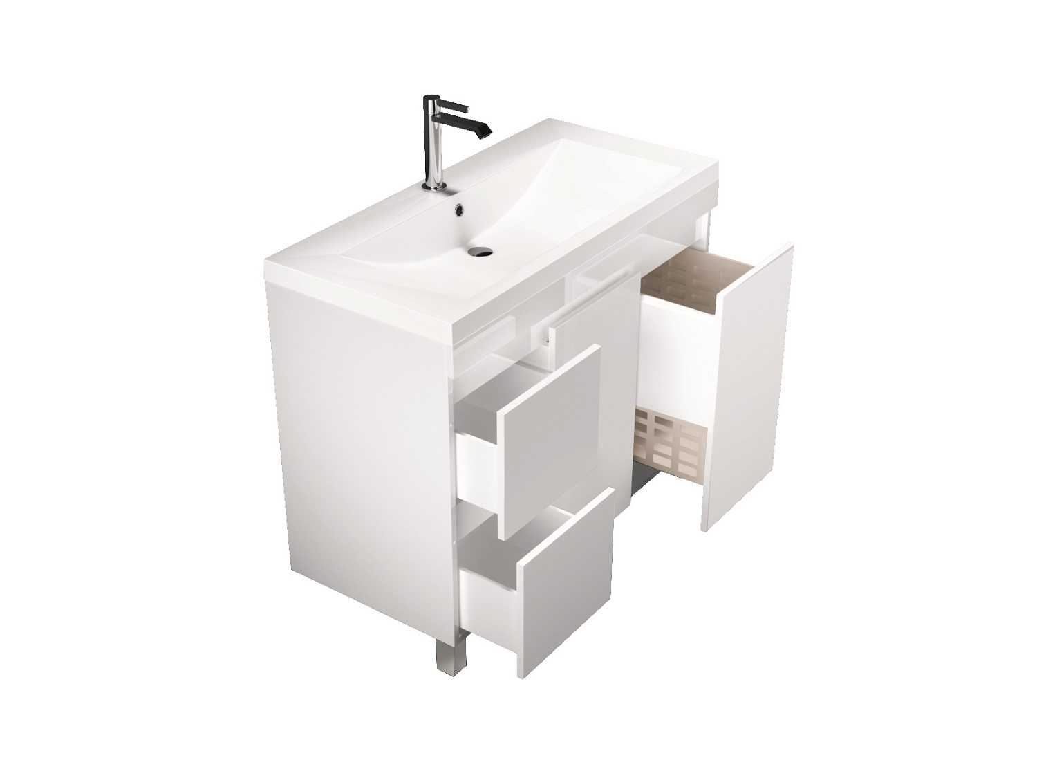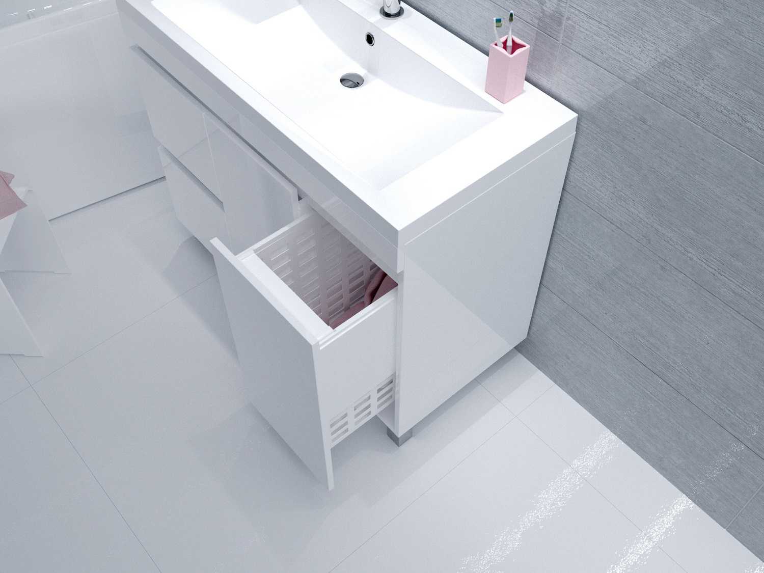 - Для бережливой повседневной эксплуатации, тумбы оснащены направляющими и дверными петлями с доводчиками, обеспечивающими бесшумное и мягкое закрывание