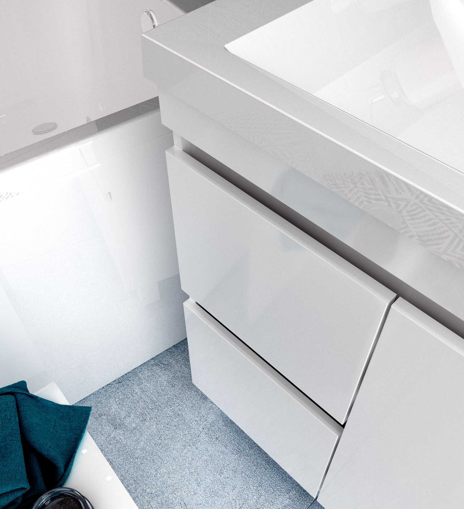 - Специально продуманная конструкция без ручек позволяет создать цельный легкий образ, не утяжеленный фурнитурой и дает возможность гармонично вписаться в любой интерьер