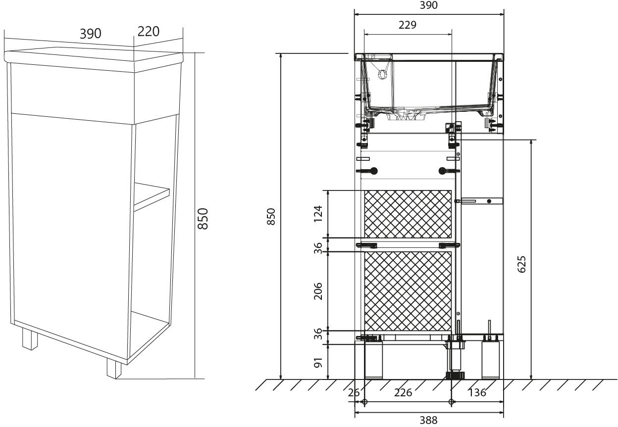 - Система хранения: 1 дверца.