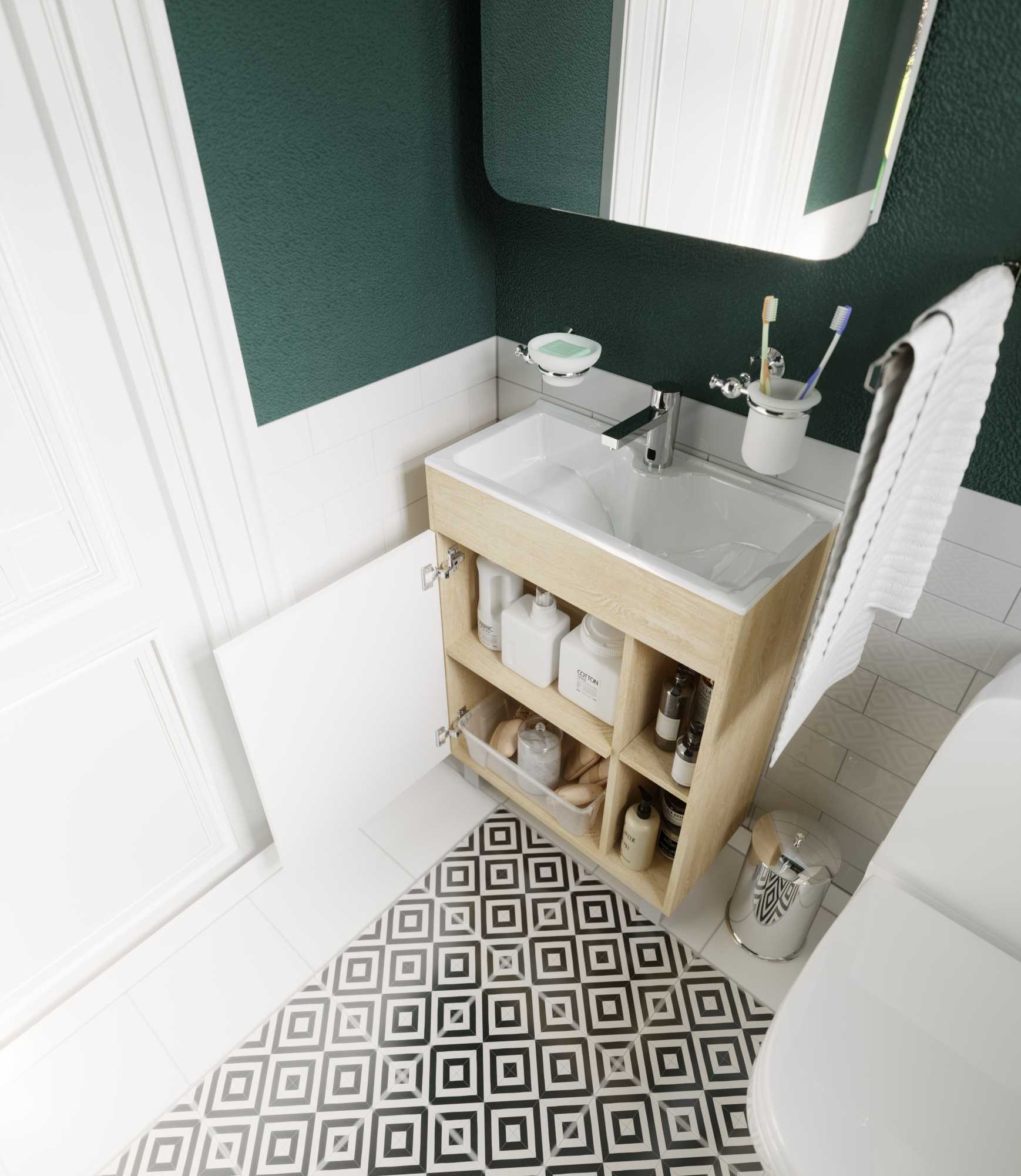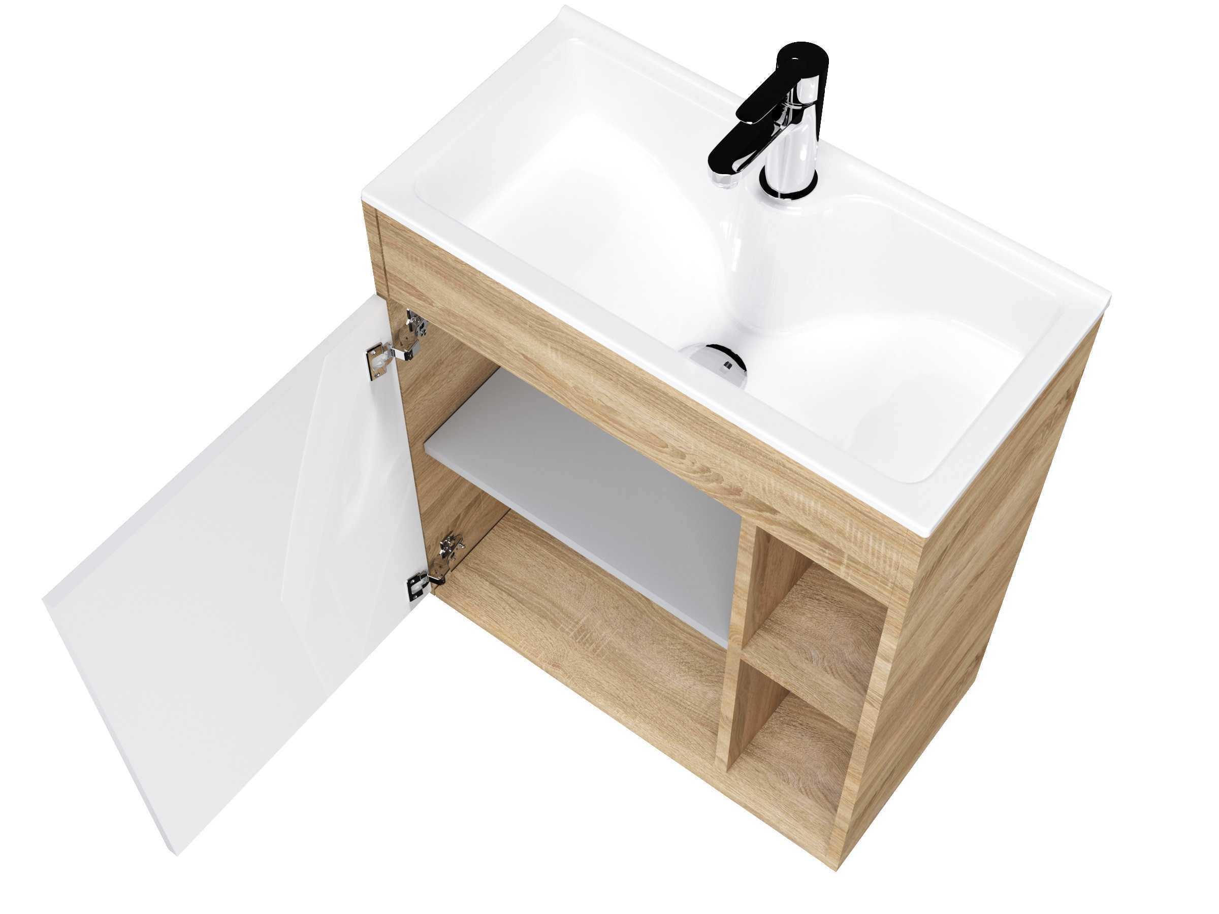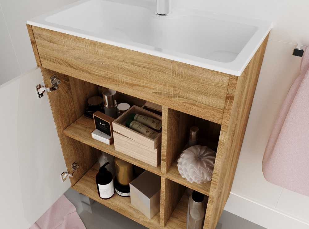 - Решение идеально подойдет в гостевой санузел или маленькую ванную комнату.Цвет: дуб сонома.