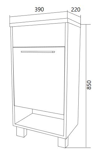 - Система хранения: 1 дверца, 1 открытая полка.