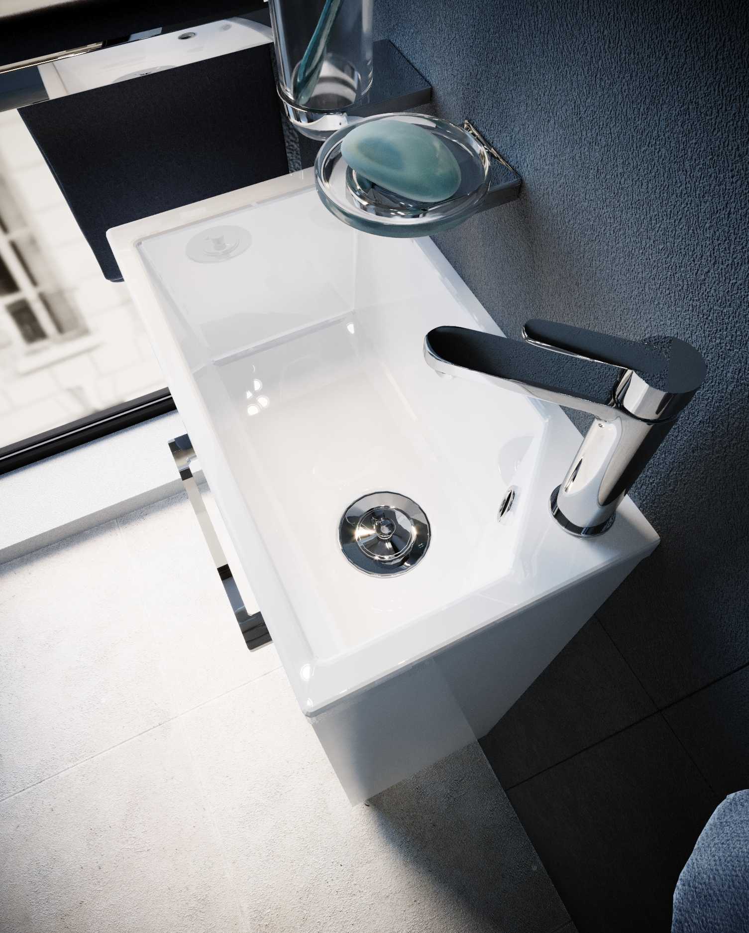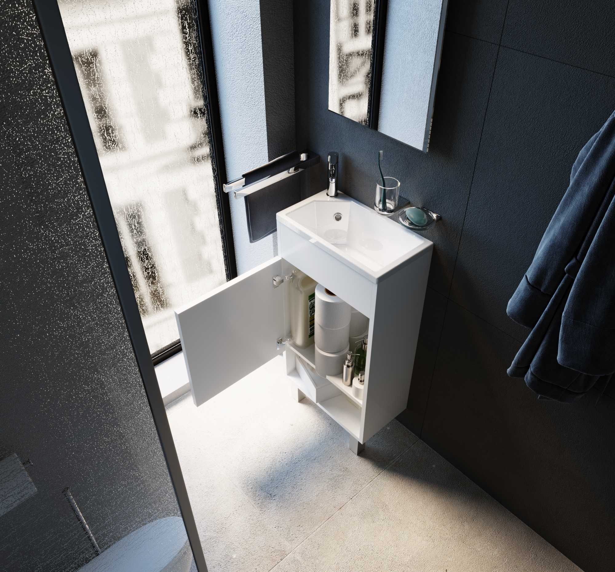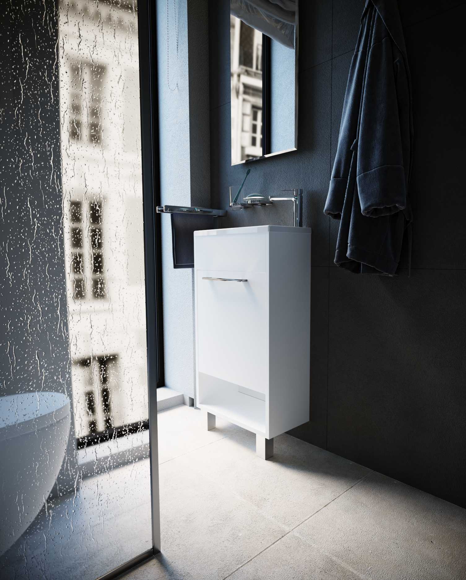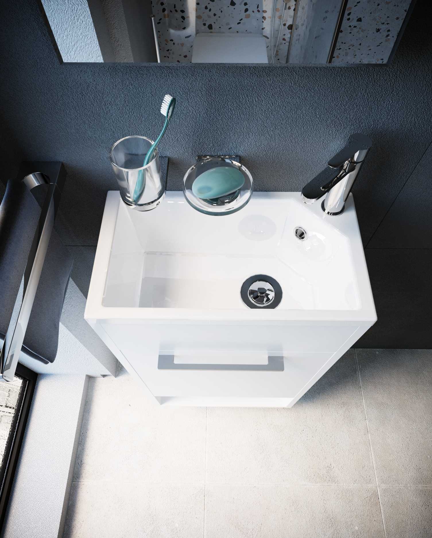- Компактная тумба с раковиной 1MarKa R с уникальными габаритами - глубина тумбы всего 22 см.