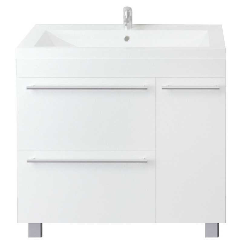 - Тумба под раковину 1MarKa Соната 90 (У51042) - компактный и практичный вариант для удобного размещения туалетных принадлежностей и полотенец.