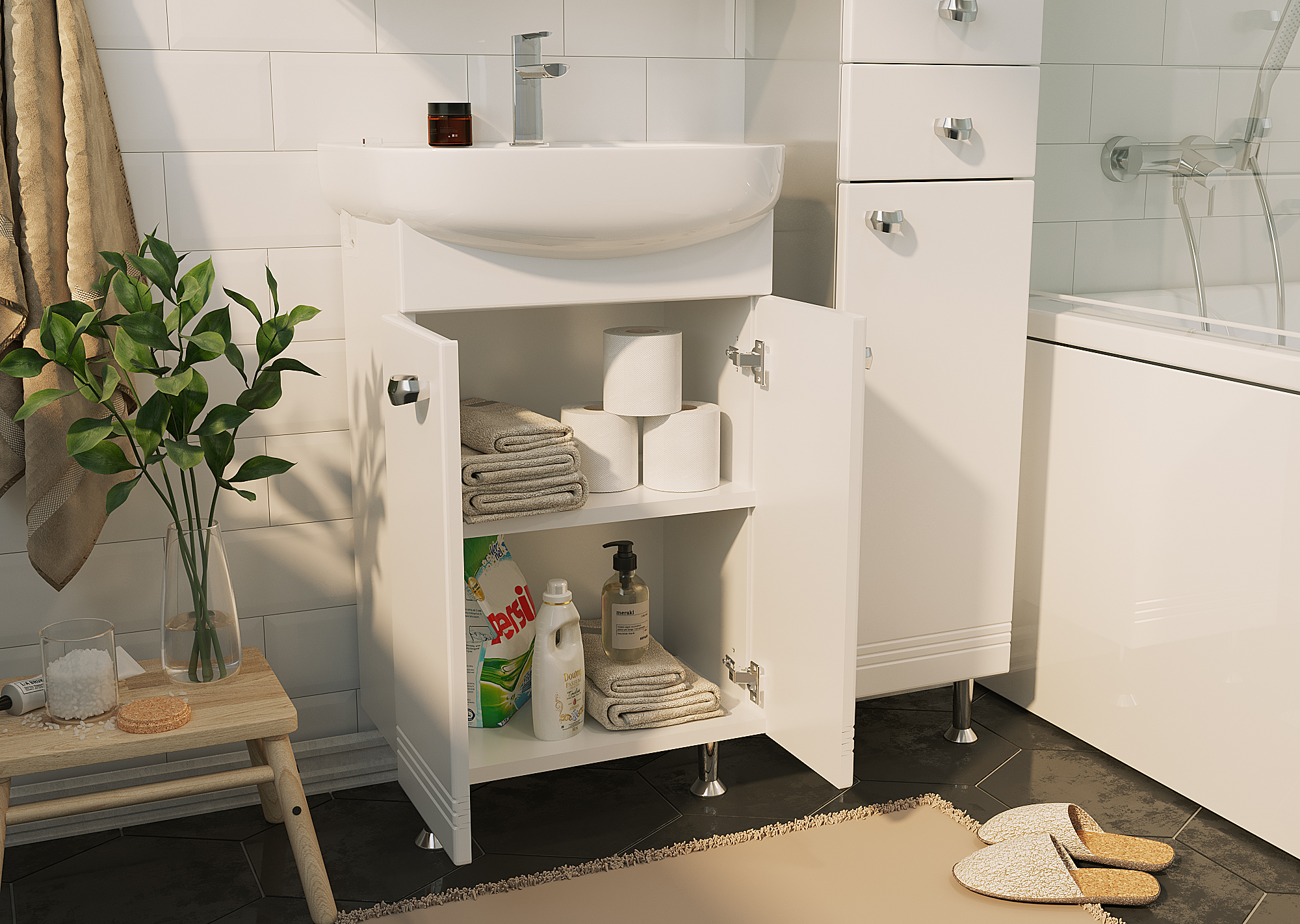 - Тумба Story предназначена для небольших ванных комнат.