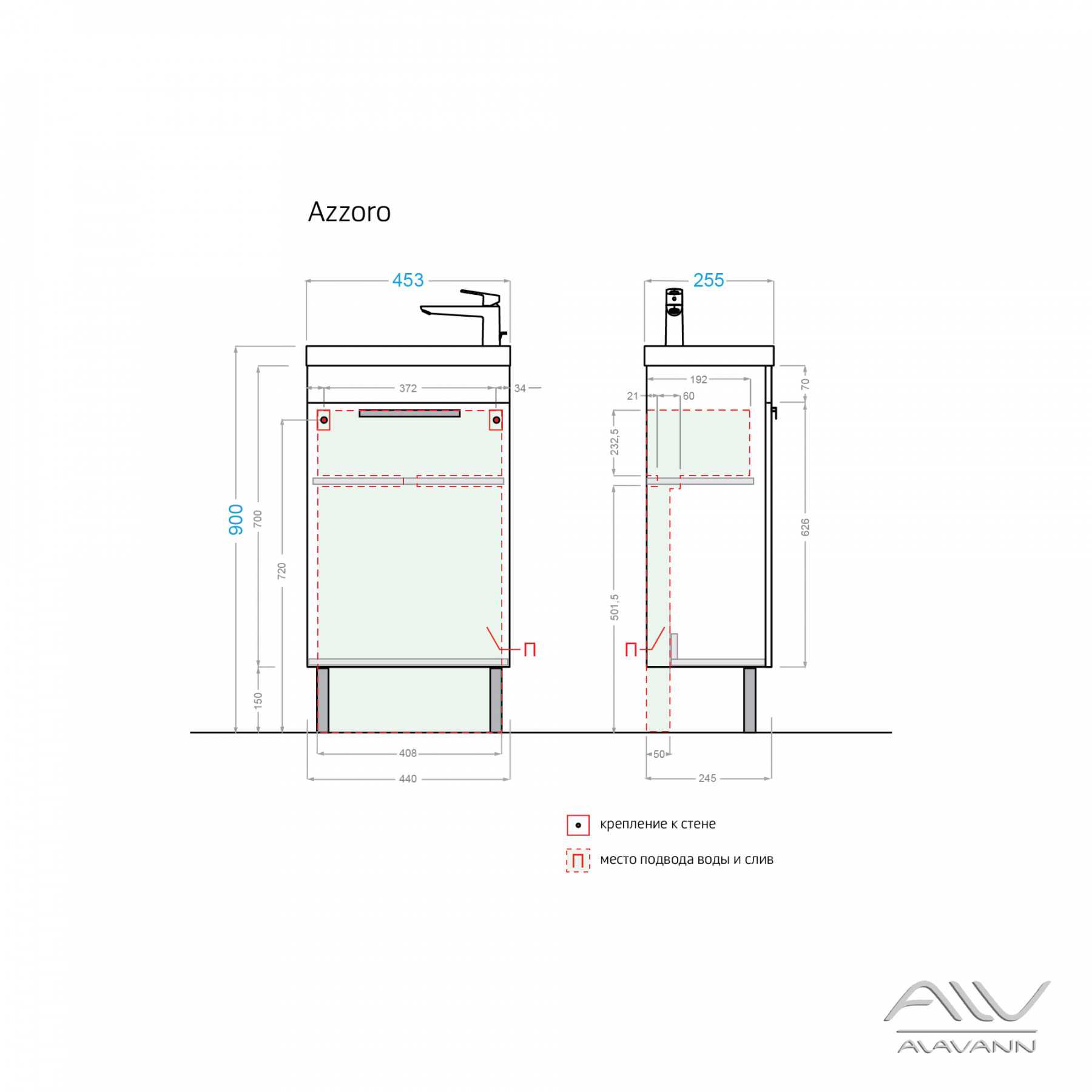 Тумба для ванной Azzoro 45 - пример стильного дизайнерского решения для небольшого помещения. Тумба выполнена из надежных влагостойких материалов и окрашена глянцевой эмалью, специально предназначенной для использования в условиях высокой влажности.