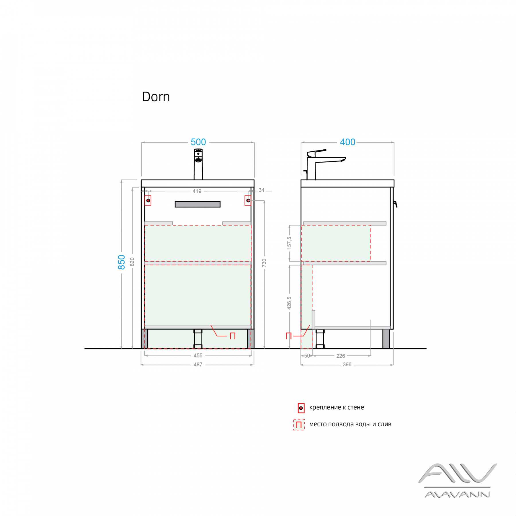 Тумба Dorn 50 стильная и функциональная. Не смотря на компактное исполнение, она очень вместительная. Распашной фасад, три полочки, одну из них можно переставлять, делает хранение еще более удобным. Хромированная эргономичная ручка и петли с доводчиками для большего комфорта в использовании.
