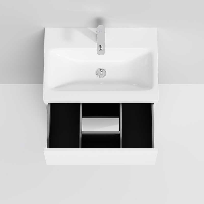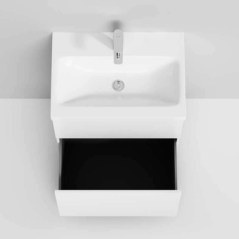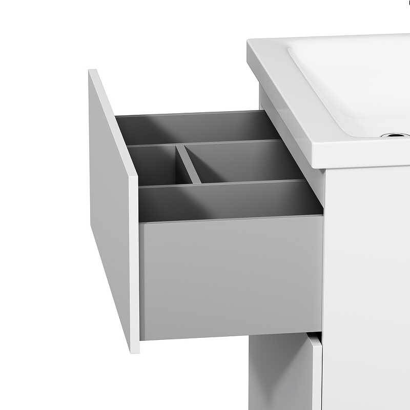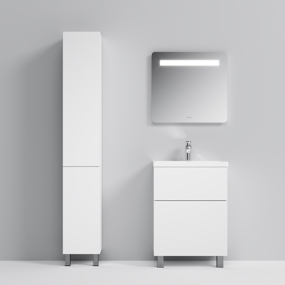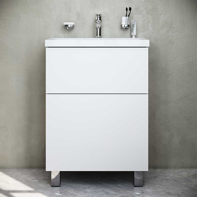 Тумба под раковину AM.PM Gem 60 M90FSX06022WG32 белая, с глянцевой поверхностью, с двумя выдвижными ящиками, с двумя хромированными ножками, для длительного срока службы в ванных комнатах с повышенной влажностью.