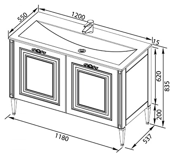 Тумба напольная Aquanet Паола 120 белый/золото (00186114)