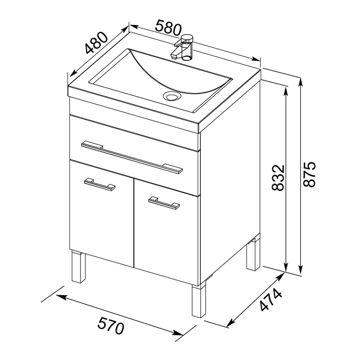 Тумба напольная Aquanet Верона 58 474х570х832 1 ящик, 2 двери, белая (182507)