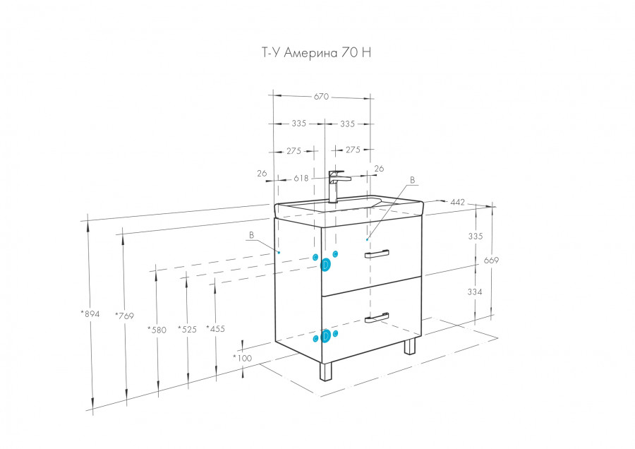 Современная лаконичная модель тумбы AQUATON Америна 70 Н шириной 70 см с двумя внешними ящиками и одним встроенным выполнена в черном глянцевом цвете. Корпус изготовлен из влагостойкой ЛДСП, а фасад - из высококачественной МДФ. Тумбы данной модификации устанавливаются на ножки. Направляющие нижнего крепежа обеспечивают жесткое и надежное крепление ящиков, а встроенные доводчики гарантируют их бесшумное и плавное закрывание. Дополнительно организовано нижнее подключение труб водоснабжения и канализации. Корпус и фасады покрыты полиэфирной краской ультрафиолетового отверждения, обеспечивающей дополнительную защиту от влаги.