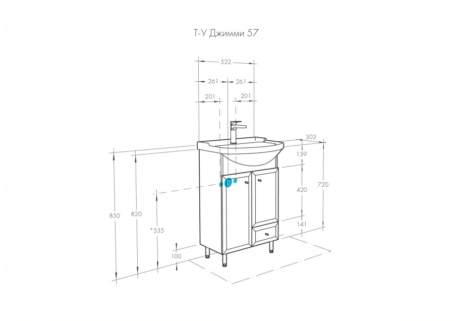 Тумба напольная Aquaton Джимми 522x300x720 белый (1.A250.3.01D.J01.0)