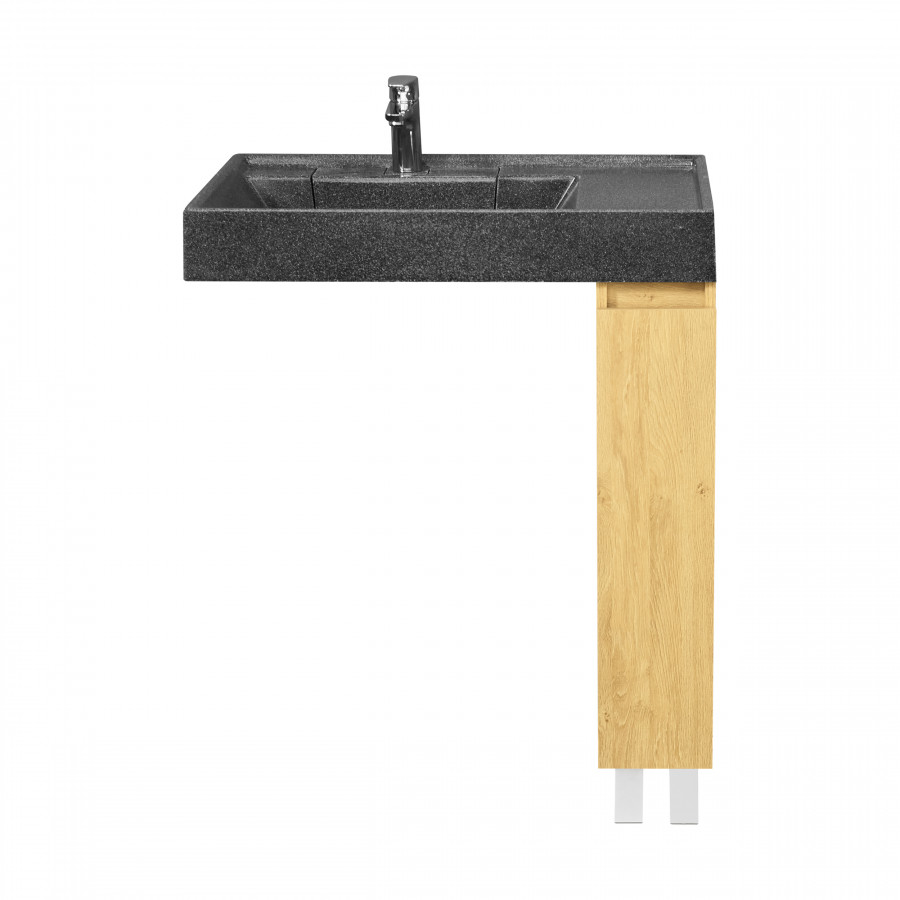 Тумба под стиральную машину Лайн 20 поможет правильно спланировать пространство тесной ванной комнаты. Мебель совмещается со стиральной машиной и позволяет органично и компактно разместить раковину. Внутри тумбы можно хранить средства для стирки и другую бытовую химию. Материал тумбы - влагостойкая ЛДСП в стильном декоре дуб каменный. Толщина материала фасада - 16 мм. Тумба имеет выдвижной ящик. Открытие тумбы осуществляется за фасад. С помощью регулируемых навесов и дюбелей тумба крепится к стене. Регулируемые хромированные ножки в комплекте могут быть установлены на необходимую высоту с учетом габаритов стиральной машины.
