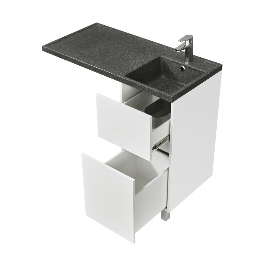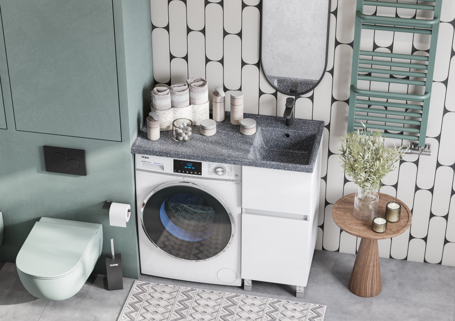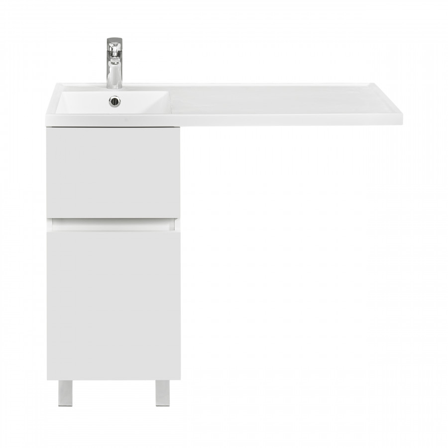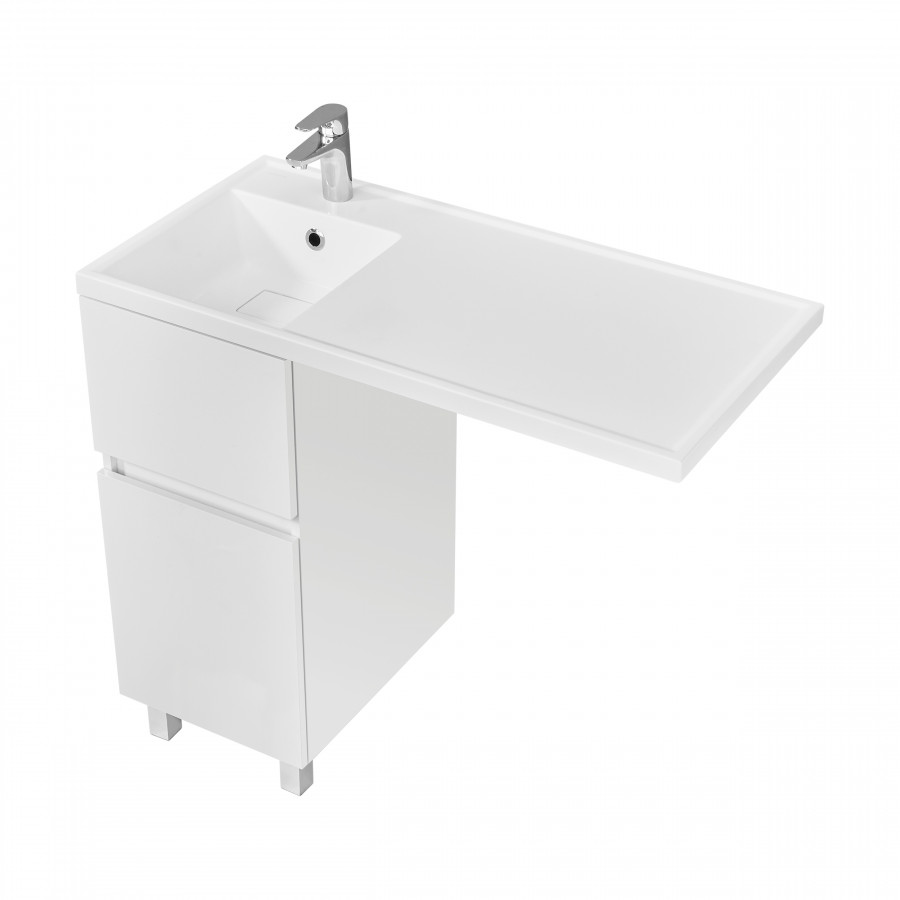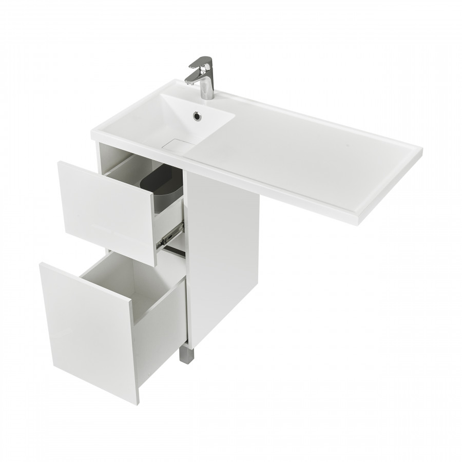 Тумба под стиральную машину Лайн 40 поможет правильно спланировать пространство тесной ванной комнаты. Мебель совмещается со стиральной машиной и позволяет органично и компактно разместить раковину. Внутри тумбы можно хранить средства для стирки и другую бытовую химию. Материал тумбы - влагостойкая ЛДСП, окрашенная в белоснежный цвет. Специальная технология покраски позволяет надежно защитить мебель от попадания влаги и повысить износостойкость. Толщина материала фасада - 16 мм. Тумба имеет два выдвижных ящика. Открытие тумбы осуществляется за фасад. С помощью регулируемых навесов и дюбелей тумба крепится к стене. Регулируемые хромированные ножки в комплекте могут быть установлены на необходимую высоту с учетом габаритов стиральной машины.