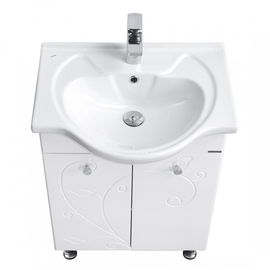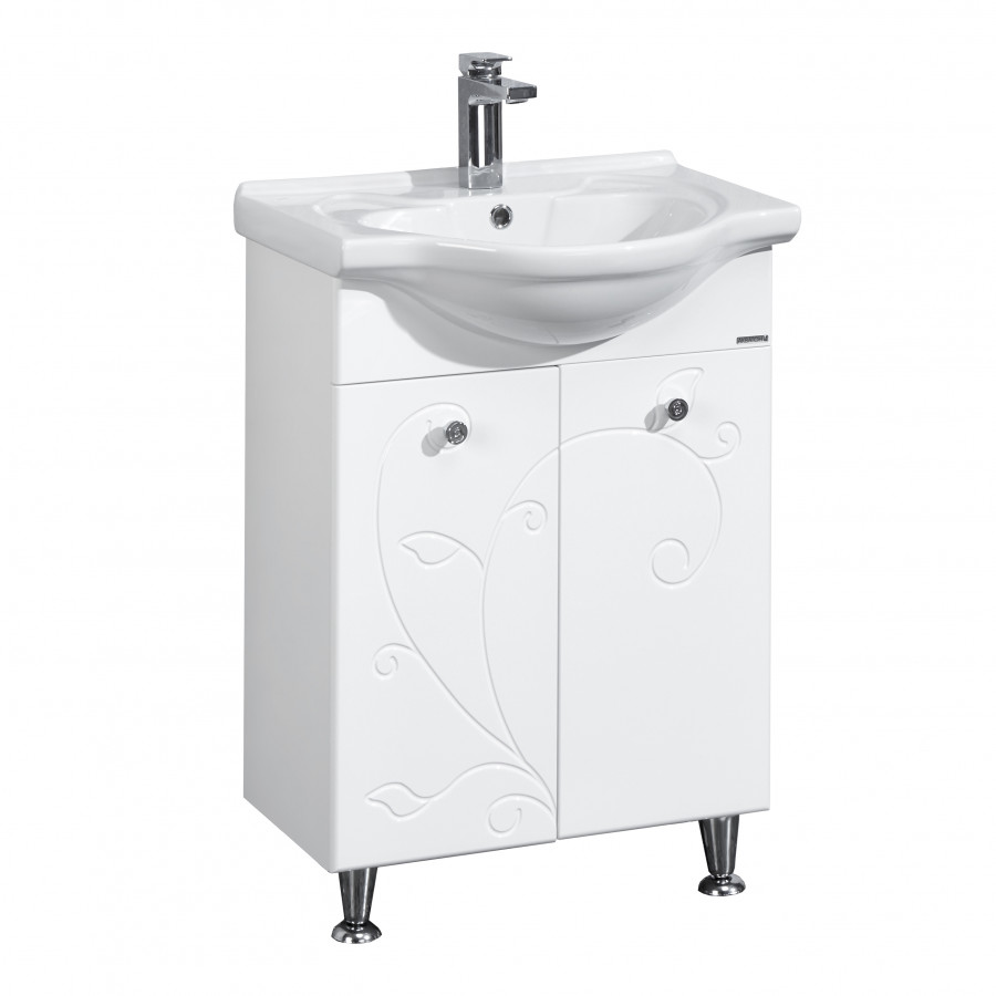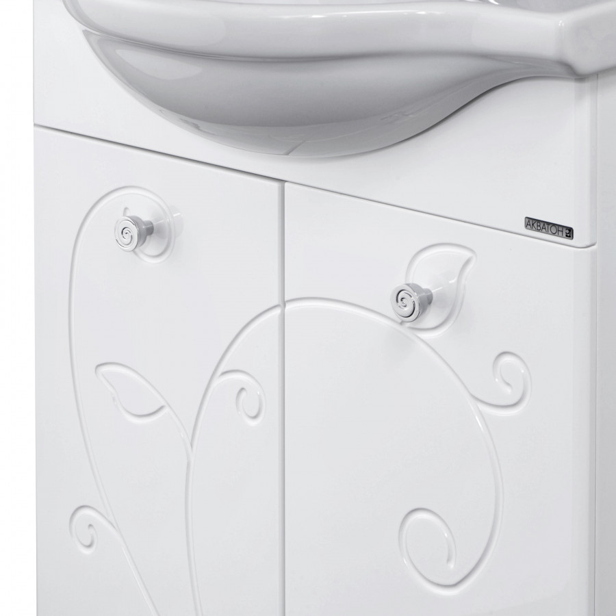 Тумба Лиана 60 от AQUATON отсылает к неоклассической стилистике и предназначена для небольших ванных комнат. Фрезеровка в виде растительных мотивов, украшающая фасад, смотрится изящно и романтично. Корпус, выполненный из влагостойкой ЛДСП, и фасады из МДФ покрыты белой краской ультрафиолетового отверждения с высокой степенью глянца. Данная модель имеет тщательно продуманную конструкцию и организацию внутреннего пространства: за двумя распашными фасадами расположена удобная полка. Дополняют образ изысканная фурнитура и ножки в хромированной отделке.