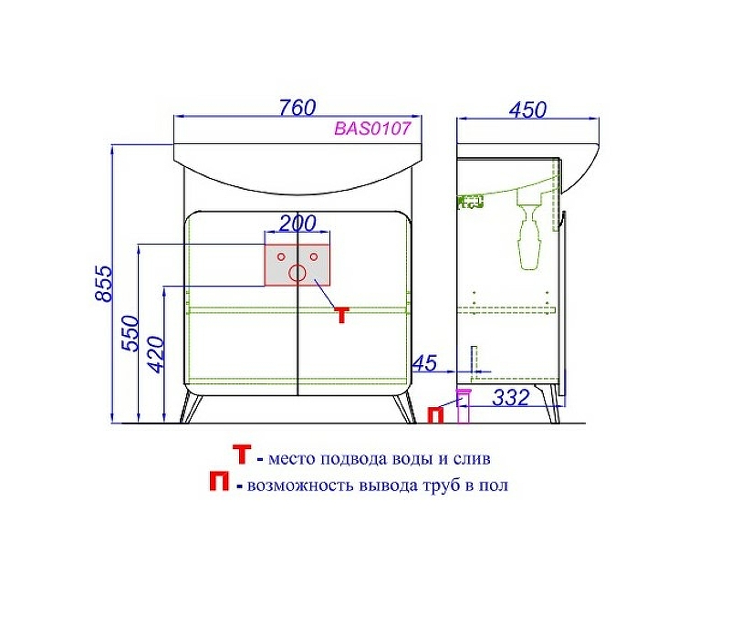 Тумба напольная Aqwella Basic 760x332x855 дуб золотой (BAS0107DZ)