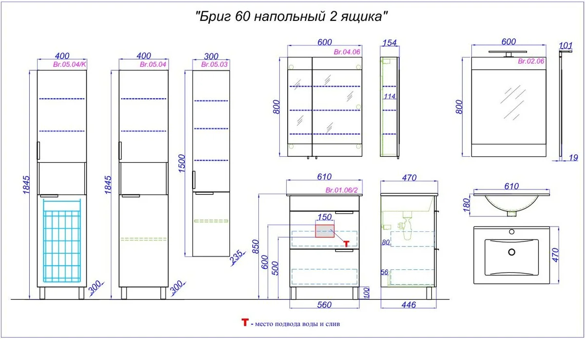 Тумба напольная Aqwella Brig 605x855x470 белая (Br.01.06/2/W)