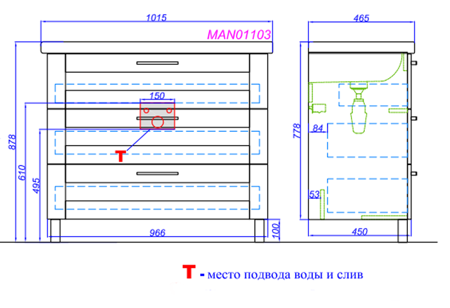 Тумба напольная Aqwella Manchester 966x450x828 белый (MAN01103)
