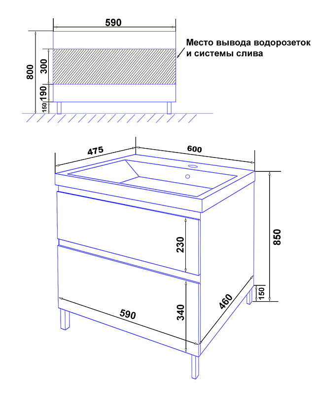 Тумба напольная Azario с раковиной Мила 60Н с раковиной Monte 60 (CS00085830)